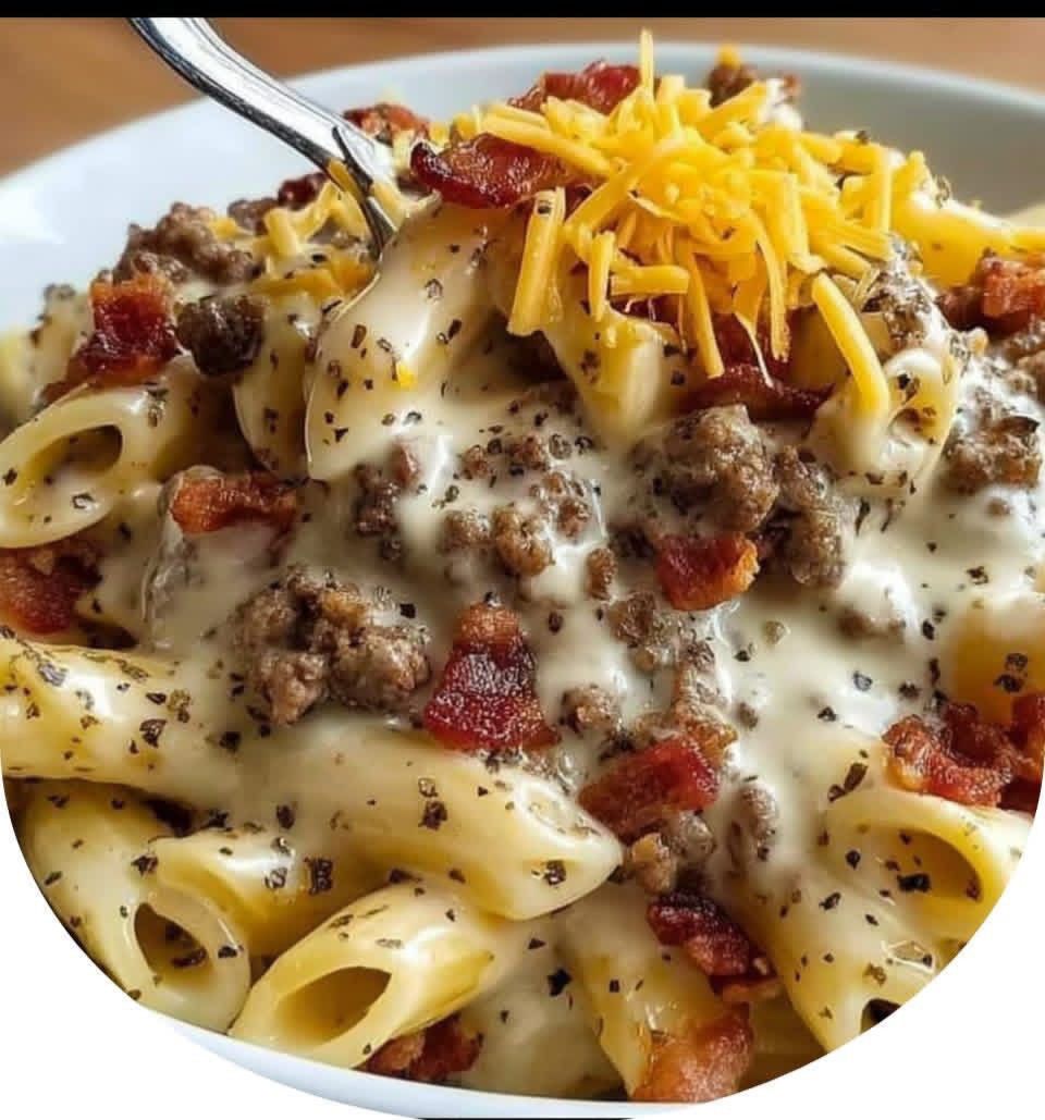 This dish is inspired by modern American comfort cooking, where classic flavors are reinvented in creative ways. Combining the iconic cheeseburger profile—beef, cheese, bacon—with Italian-style Alfredo pasta reflects today’s love for fusion meals that are fun, filling, and family-friendly.